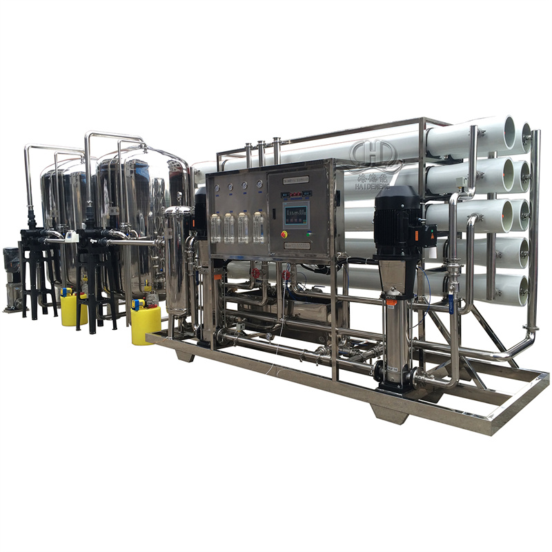 1. The entire system is configured with stainless steel, which runs stable and has a refined and beautiful appearance. 2. Equipped with a raw water tank and an intermediate water tank to prevent the impact of unstable tap water pressure on the equipment. 3. Equipped with a dedicated purified water tank with a digital electronic level gauge, rotating spray cleaning, and empty ventilation device. 4. Adopting imported Dow Chemical reverse osmosis membrane BW ultra-low pressure membrane, with high desalination rate, stable operation, and 20% energy consumption reduction. 5. Equipped with a pH adjustment and online detection system to regulate the pH value and prevent the influence of CO2 on the water quality of the produced water. 6. Equipped with ozone and ultraviolet sterilization systems and terminal microfiltration devices. 7. The control system adopts a fully automatic method, with main components using imported components, high stability, and easy and convenient operation. 8. Equipped with a purified water delivery and supply system. 9. All key materials use internationally renowned brands in the industry to ensure quality and are designed with the best configuration.